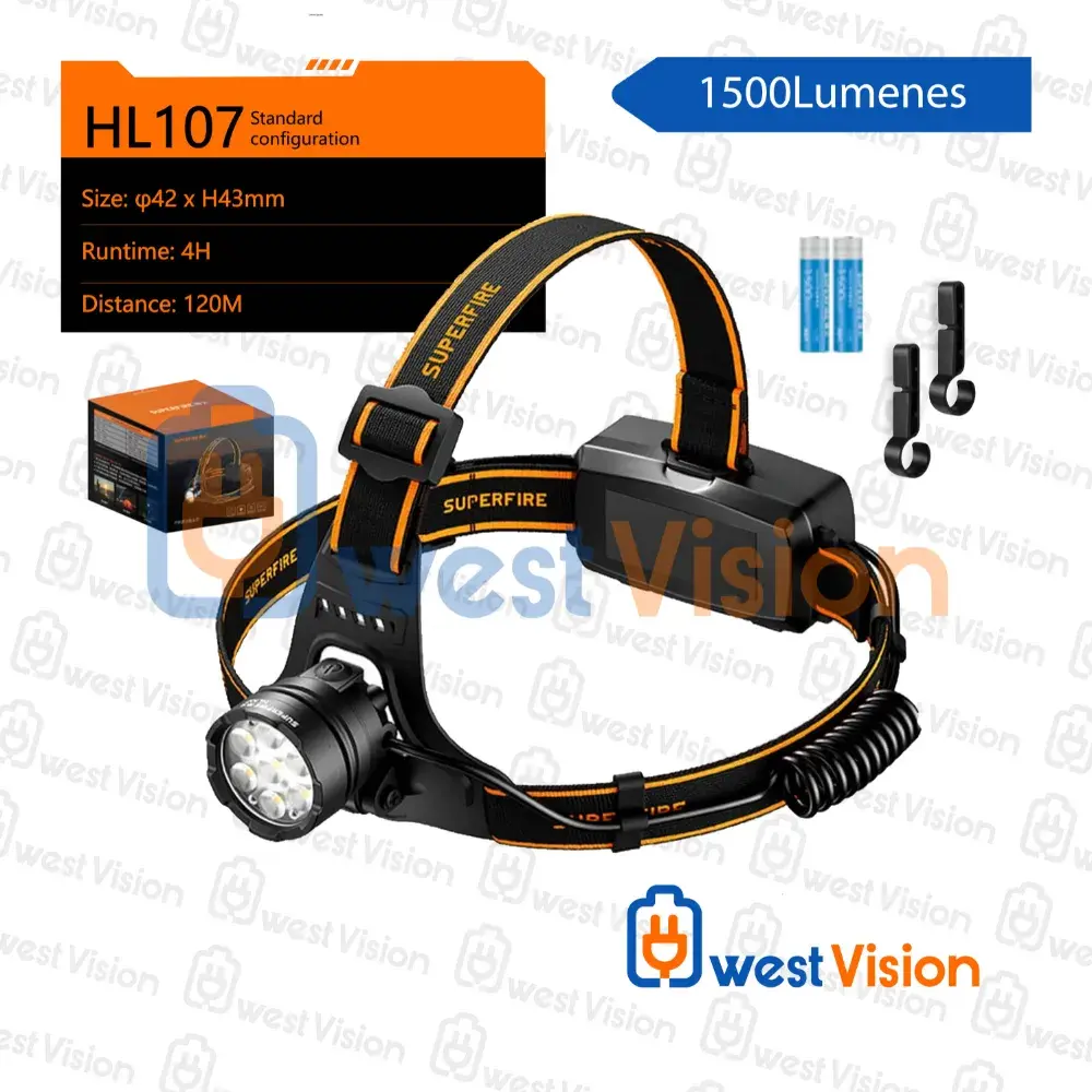 La Superfire HL107 es una linterna frontal profesional de alto rendimiento diseñada para brindar máxima potencia, comodidad y tecnología manos libres.