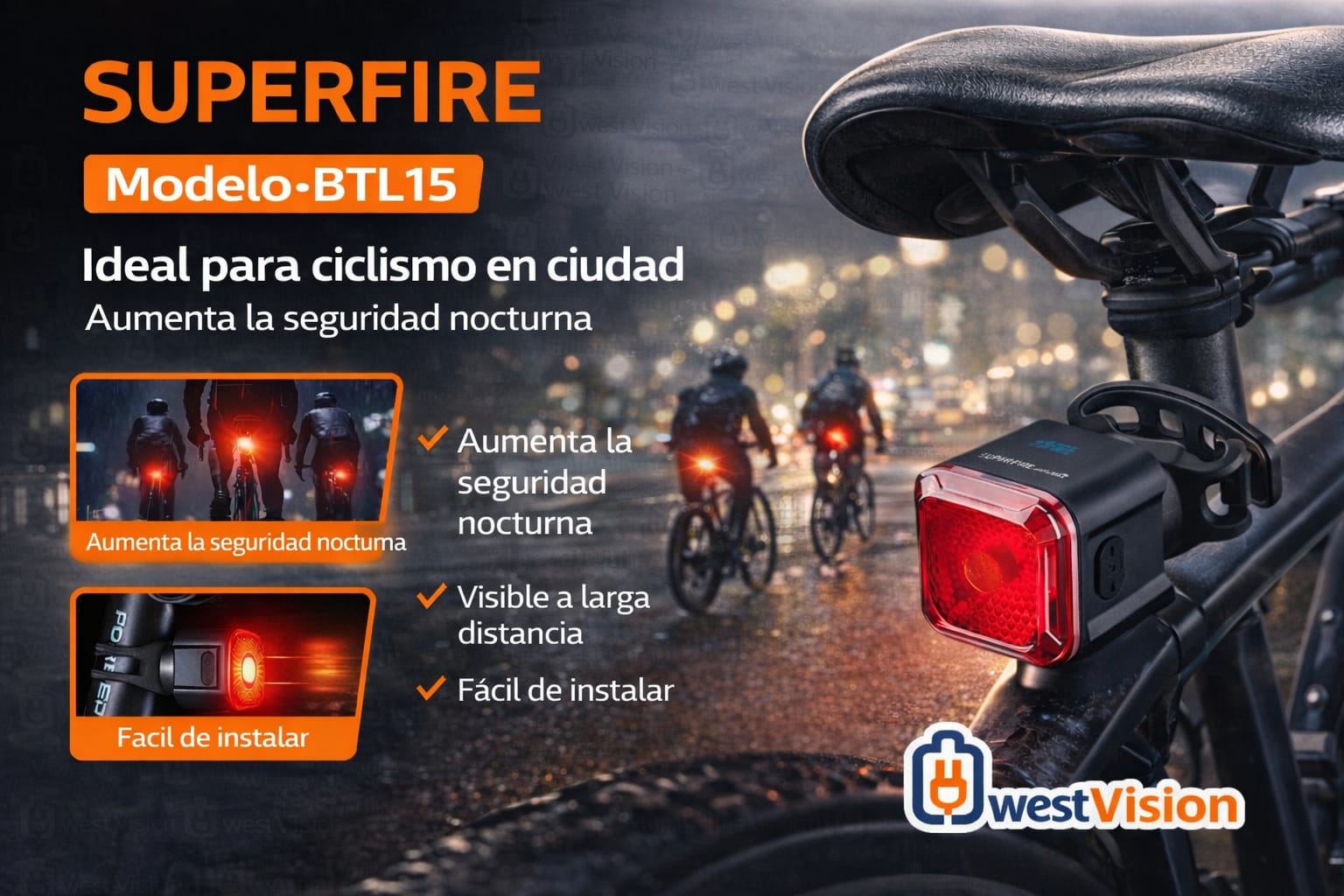 La luz trasera para bicicleta SUPERFIRE BTL15 está diseñada para mejorar tu visibilidad y seguridad durante recorridos nocturnos o en condiciones de poca luz.